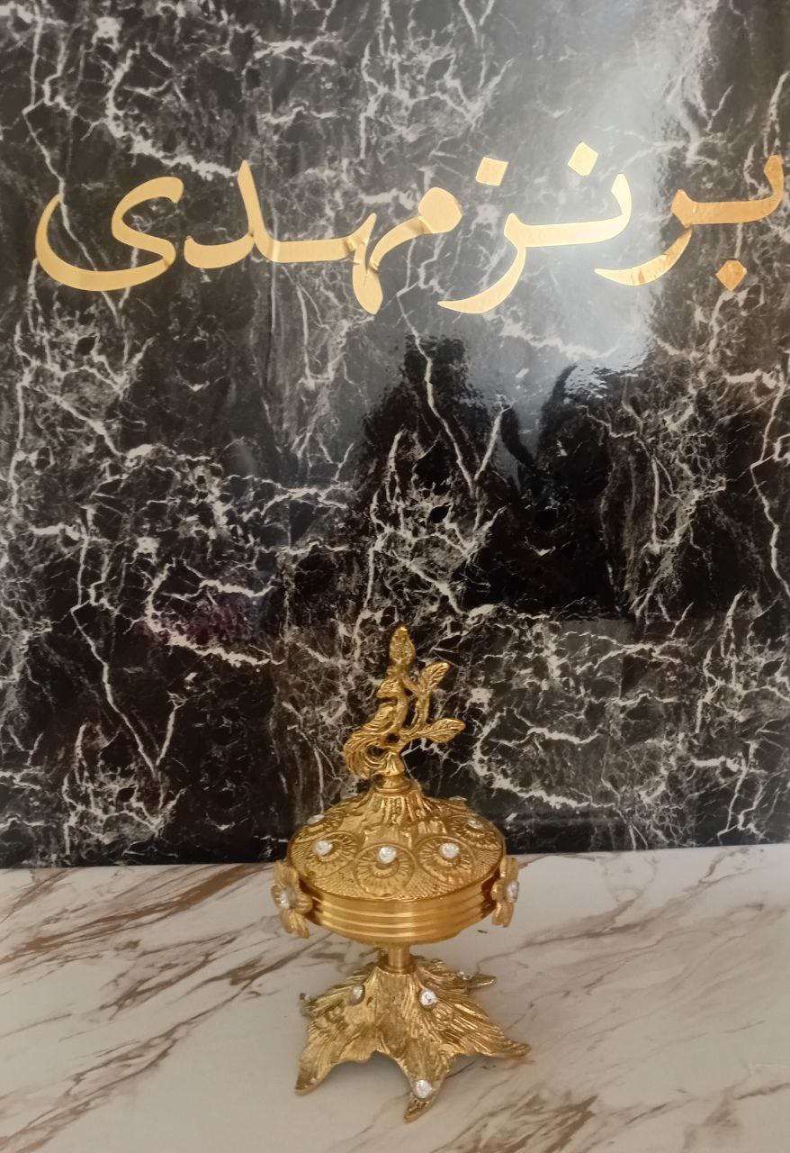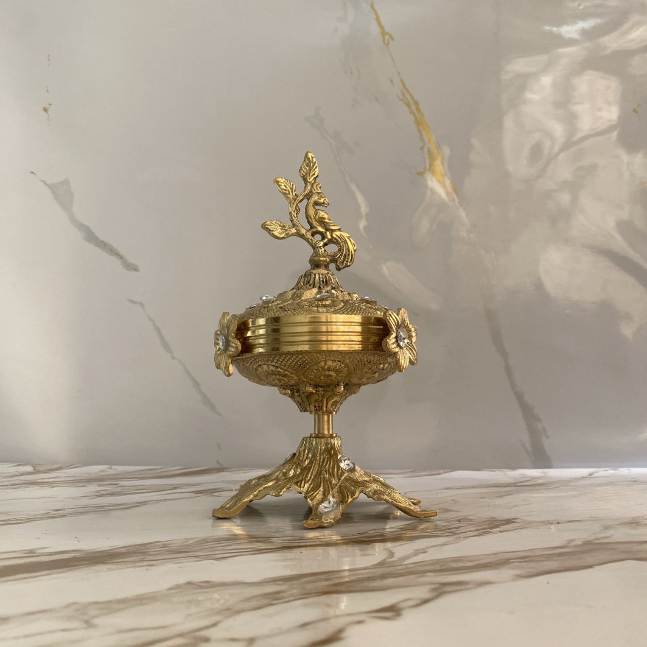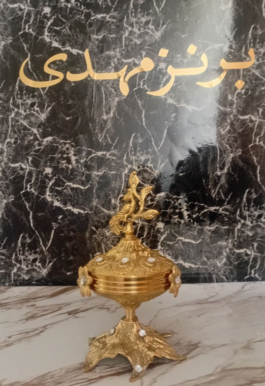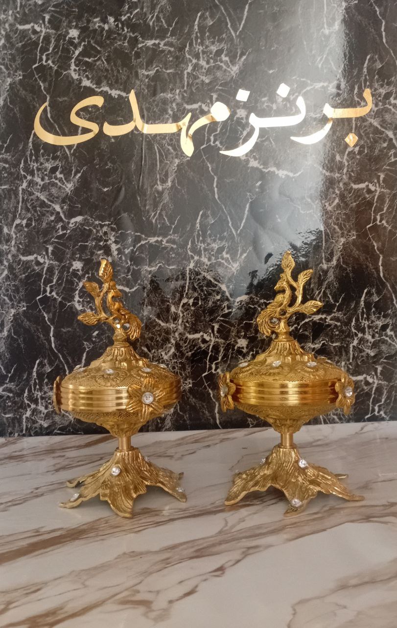 عرض سلام شکلات خوری یا قندان کار شیک و نگین دار ساخته شده از برنج اصل با ضمانت ارتفاع 24 عرض 13 وزن 1200 گرم ضمانت فیزیکی کالا ارسال سریع کالا و دریافت کد پیگیری مرسوله