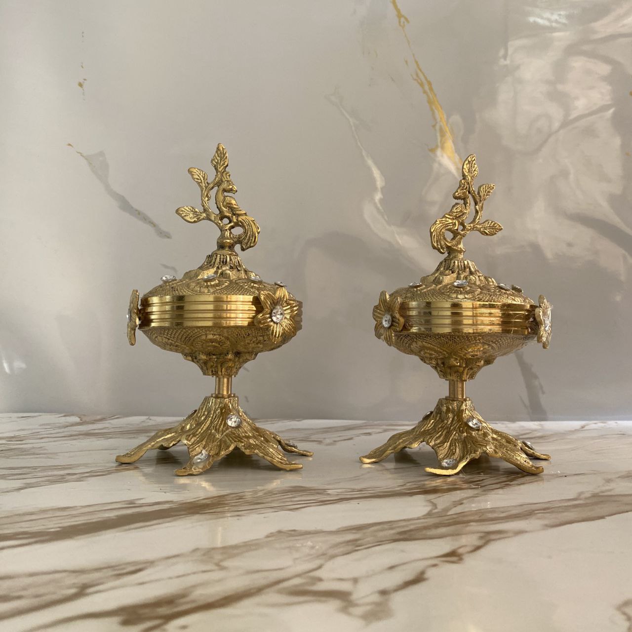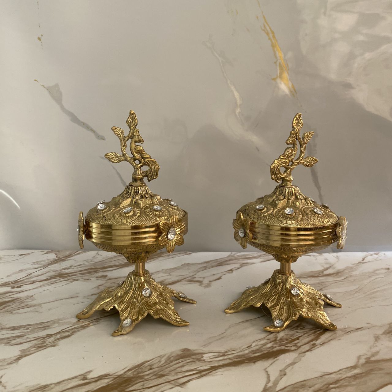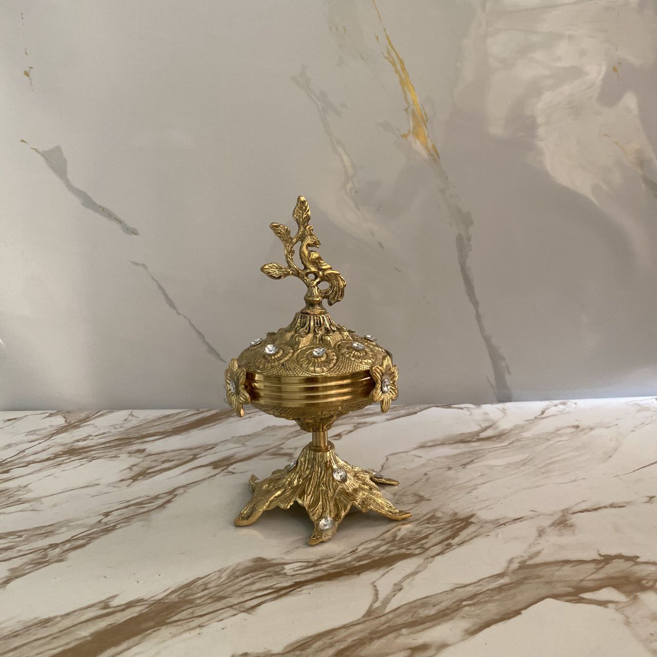 عرض سلام شکلات خوری یا قندان کار شیک و نگین دار ساخته شده از برنج اصل با ضمانت ارتفاع 24 عرض 13 وزن 1200 گرم ضمانت فیزیکی کالا ارسال سریع کالا و دریافت کد پیگیری مرسوله